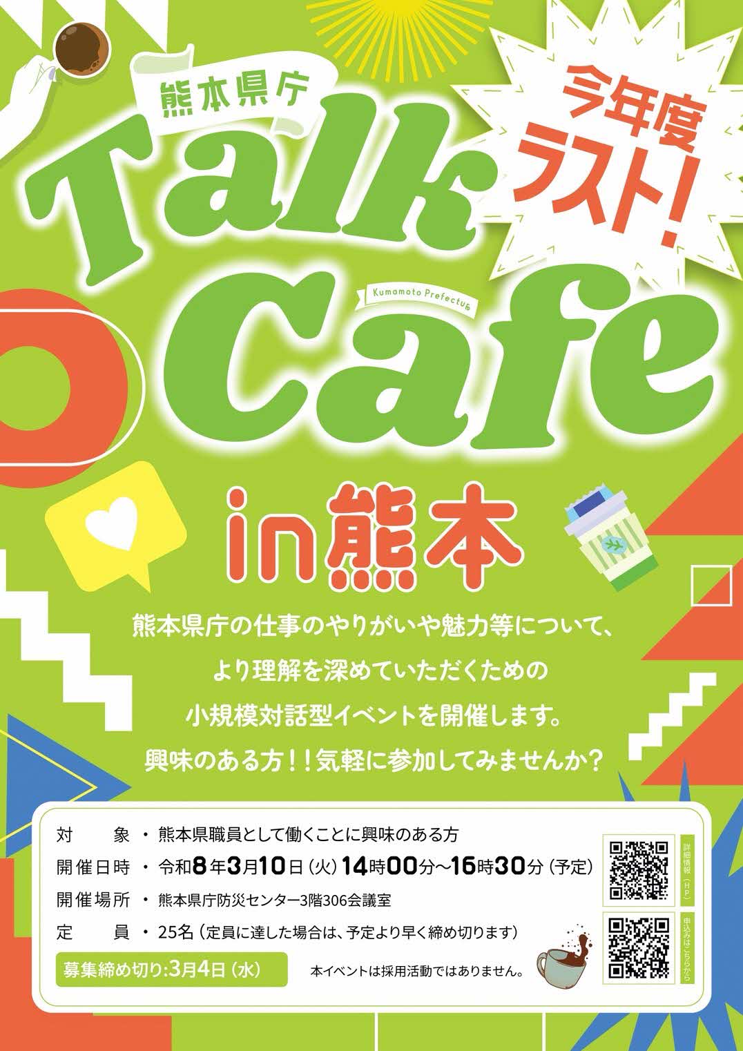 (3月10日開催)「今年度ラスト!熊本県庁トークカフェin熊本」を開催します!